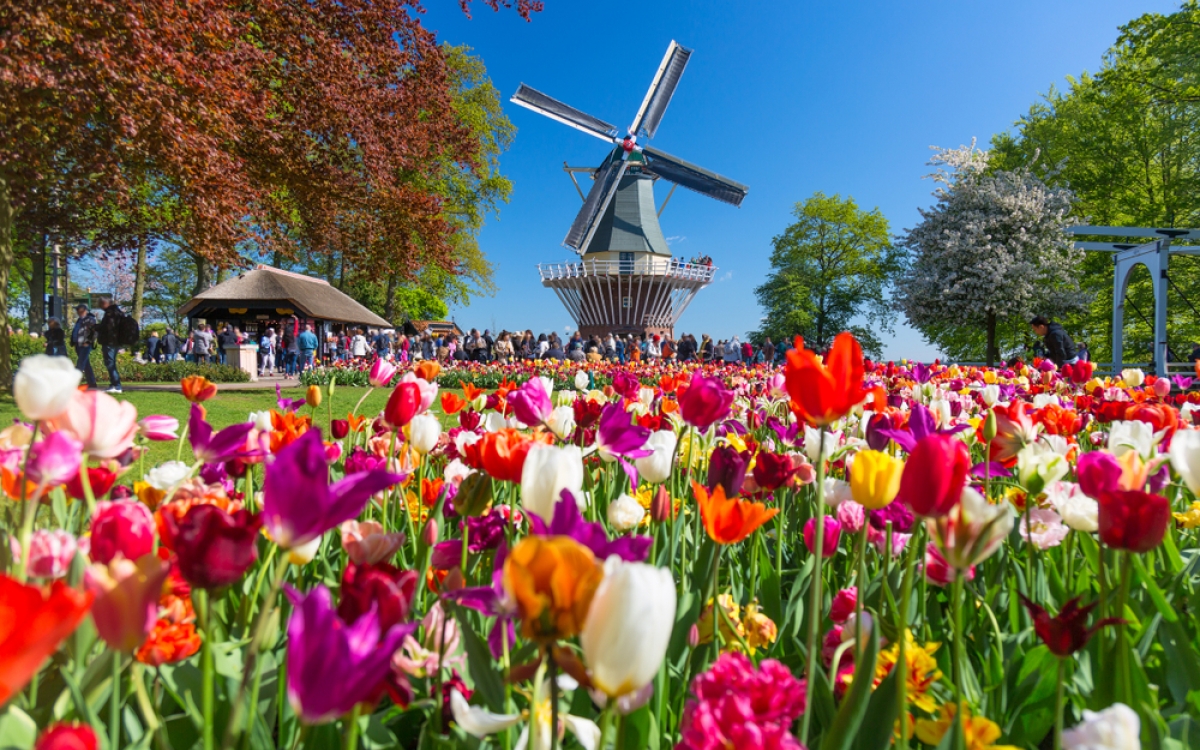 • neskončna polja cvetličnih nasadov, med katerimi kraljujejo tulipani vseh barv