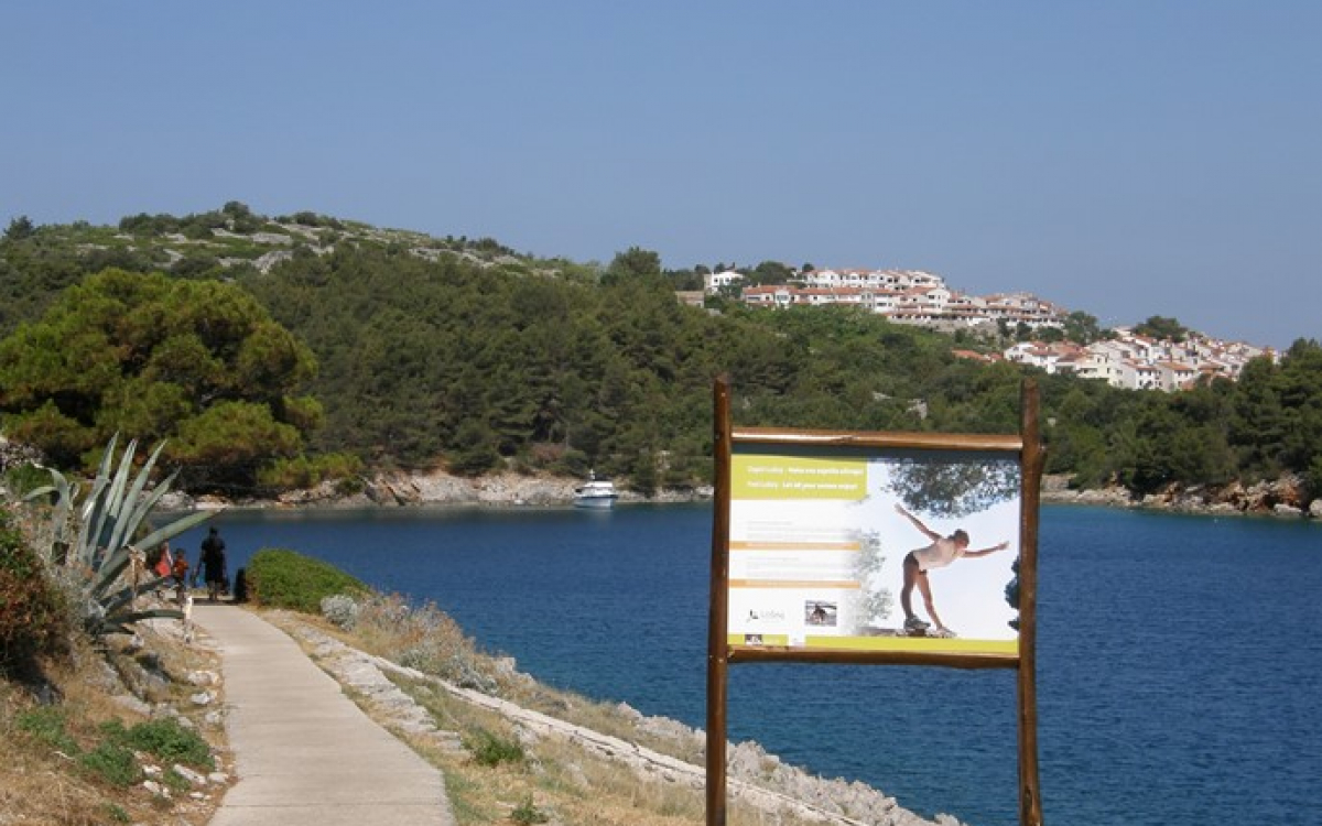 Plaža: 50 od hotela, nagrajena z Belo zastavo, kamnita, 2 prodnati plaži primerni za najmlajše, v bližini FKK plaža, tuši, kabine za preoblačenje, reševalec iz vode, ležalniki in senčniki ob bazenu in plaži za doplačilo (glede na razpoložljivost).