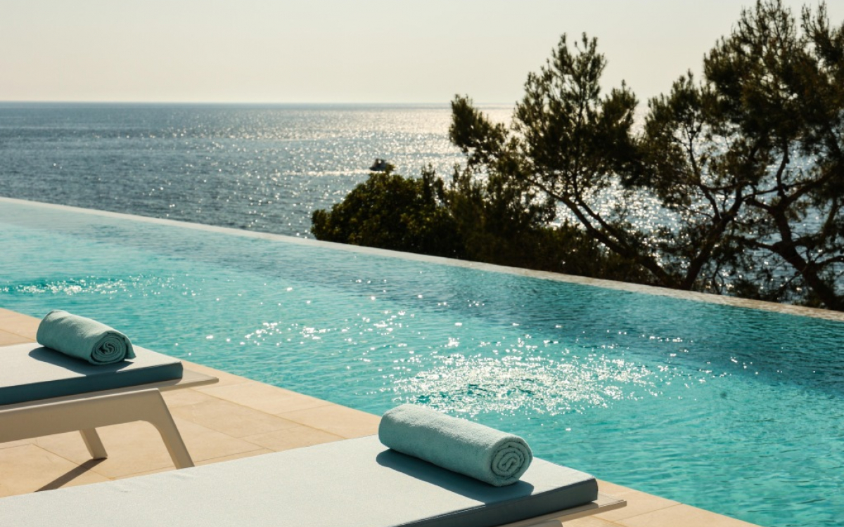 Hotel je obdan z borovim gozdom, lokacija pa omogoča enostaven dostop do različnih prodnatih in skalnatih plaž.