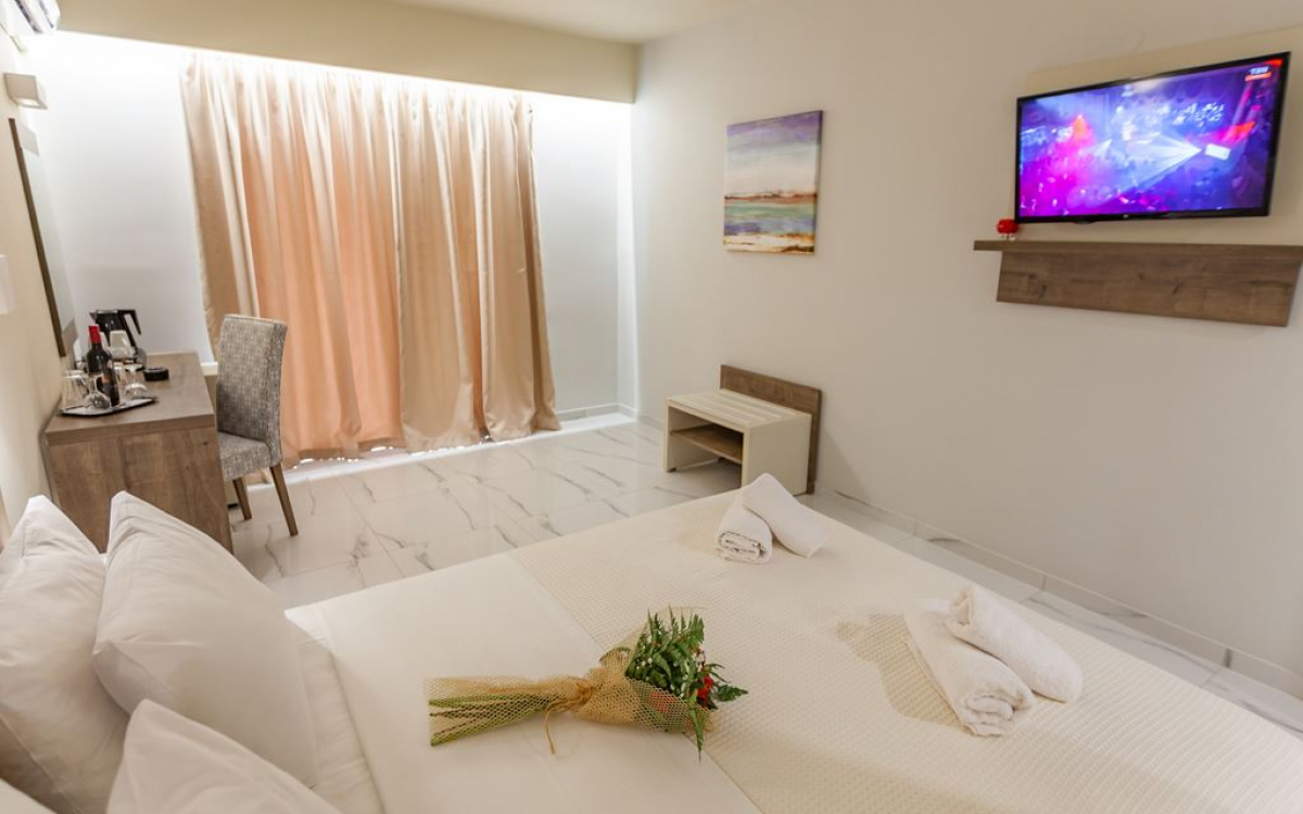 Lega: ob peščeno prodnati plaži, v vasici Stavromenos, približno 77 km od letališča Chania, 72 km od letališča Heraklion.