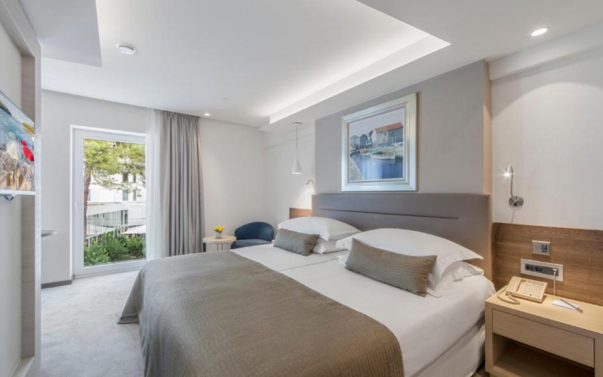 Čikat, edinstven zaliv kjer se zgodi pravljica. Umeščen v skrito zavetje stoletnih borovcev, ki z blagodejno klimo pomirijo dušo in telo. Plaža nagrajena z belo zastavo – poleg obale je zagotovljena čistost morskega dna. Najbolj prefinjen oddih do sedaj čaka, da ga odkrijete. Eleganca hotela, odlična storitev in bogata hotelska ponudba so samo še pika na i.