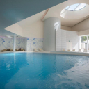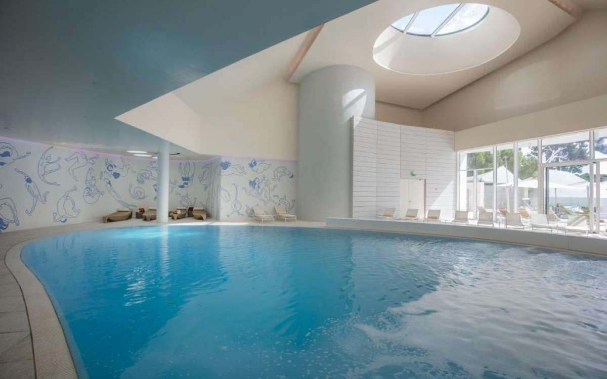 Bazen in Wellness: zunanji bazen z morsko vodo s teraso za sončenje v borovi senci in notranji bazen z ogrevano morsko vodo. Prostorna in elegantna SPA klinika, ki se razprostira na pribl. 2500 m2. Povezana je s SPA vrtom na prostem, ob morju. SPA kliknika ponuja vrhunsko udobje in maksimalno zadovoljstvo. Lahko zaplavate v notranjem bazenu, se sprostite v savnah in sobi za počiteki ali pa si privoščite nego obraza in telesa.