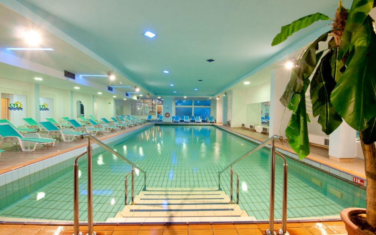 Bazen: notranji bazen z morsko vodo v Hotelu Mimosa, notranji bazen s sladko vodo v Hotelu Hedera (oba bazena sta zaprta v juliju in avgustu). Več zunanjih bazenov s sladko vodo, prostor za sončenje. Senčniki in ležalniki ob bazenu brezplačno (do zasedbe mest).