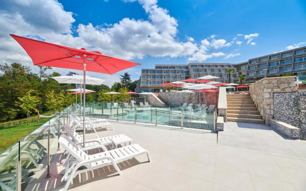 Hotel Mediteran Plava Laguna se nahaja ob obali, sredi gozdička v naselju Plava laguna.