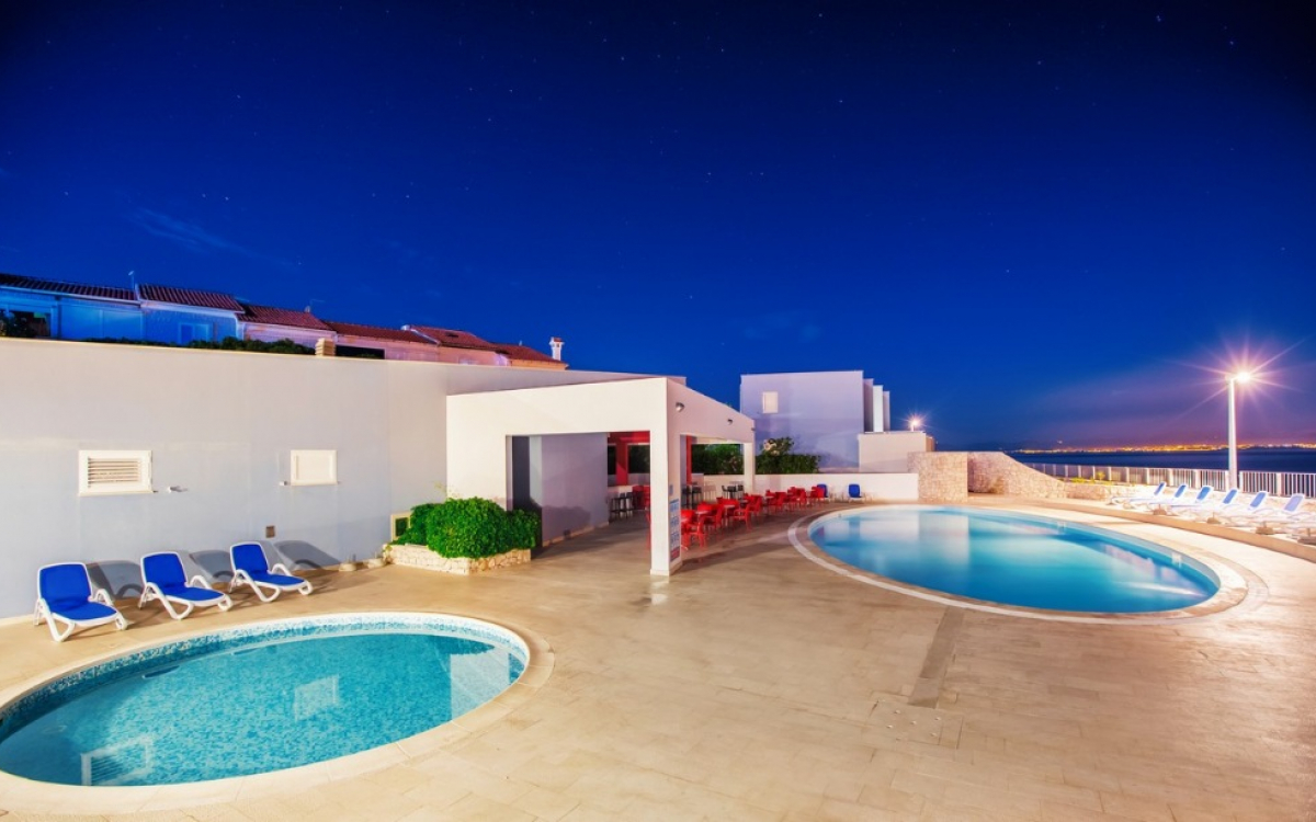 BAZENI: zunanji bazen s sladko vodo, ležalniki in senčniki ob bazenu (glede na razpoložljivost, plačilo).