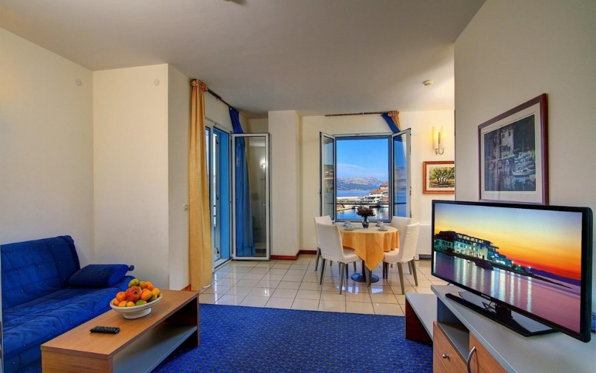 SOBE: klimatizirane, kopalnica (prha/kad, WC, sušilec za lase), telefon, LCD TV, sef, mini bar, balkon, nekatere na morsko stran, možnost dodatnega ležišča (raztegljiva sofa). V sobi 2+1 možnost zasedenosti 2 odraslih oseb in 2 otrok do 15 let - zmanjšana komoditeta, 2. otrok do 15 let na skupnem ležišču.