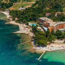 Plaža: skalnato-betonirana z manjšim zalivom in mivko v morju, tudi za otroke; ležalniki in senčniki za doplačilo (omejeno število). Možen dostop tudi za invalidne osebe.
