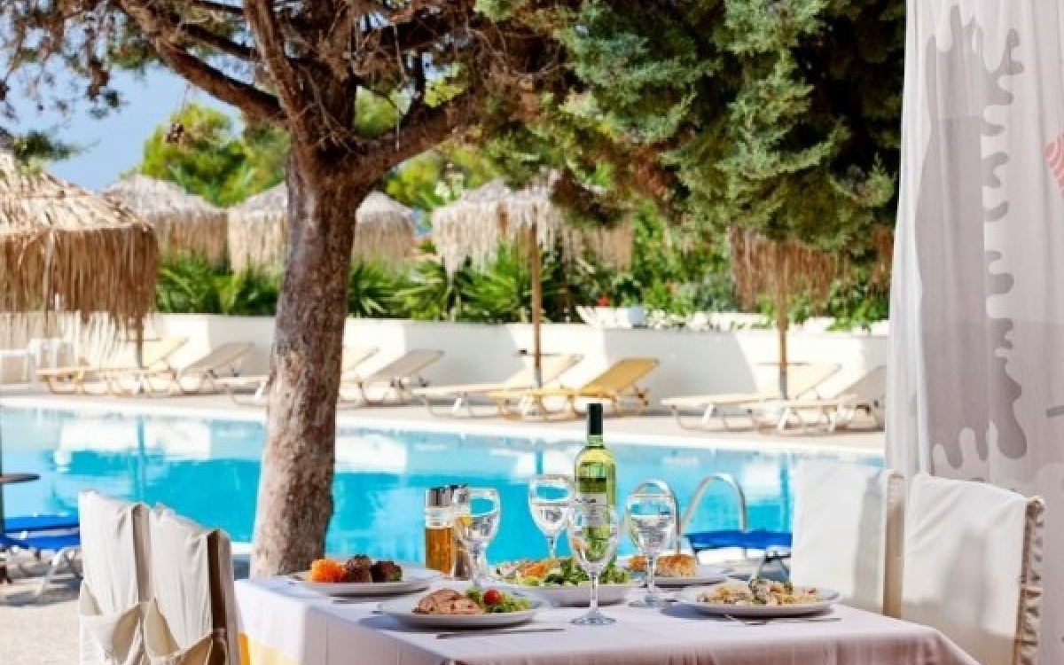 Opombe: velik hotelski kompleks se nahaja na mirnejši lokaciji in sestoji iz treh sestrskih hotelov, Ionian Sea & Aquapark, Ionian Resort in najnovejši del Thalassa Superior. Opis ponudbe se lahko, v času od priprave vsebine programa do prihoda gostov, spremeni, zato točen opis gostje prejmejo ob prihodu v hotel. Ob doplačilu na voljo pijača v baru ob vodnem parku, najem sefa, razni vodni športi, biljard ter druge hotelske storitve, ki niso del all inclusiva. Hotel je prilagojen tudi gibalno oviranim osebam.