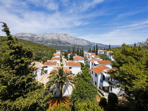 Turistično naselje obdano s prodnato plažo in prijetnim...