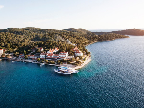 Hotel Odisej se nahaja na otoku Mljet v naselju Pomena in je...