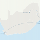 Polet iz ljubljanskega ali bližnjega letališča (v tem primeru prevoz iz Ljubljane) preko vmesnega letališča proti Windhoeku. (letalo)