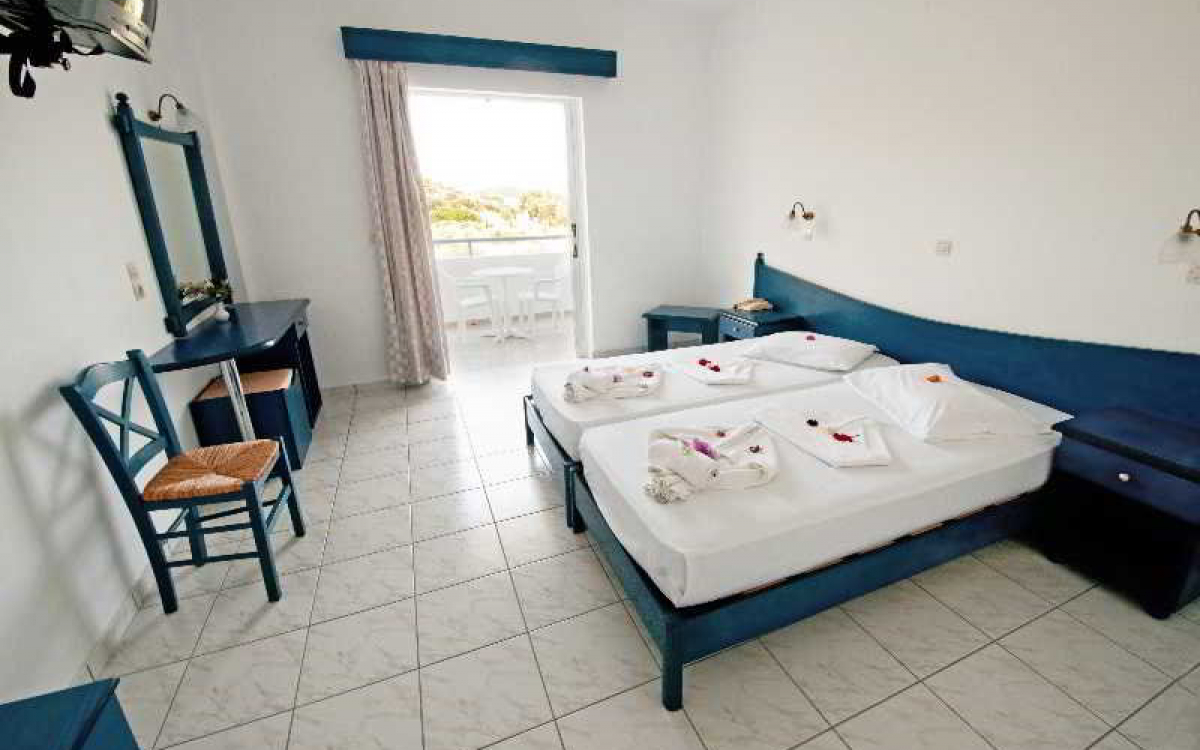 Standardne sobe: preprosto opremljene, klimatska naprava (doplačilo, julij in avgust brezplačno), Sat TV, telefon, sef na recepciji (doplačilo 10 €/ teden), manjši hladilnik, kopalnica, sušilnik za lase, balkon. Nastanitev je primerna za 2 odrasli osebi ali 2 odrasli osebi in 1 otroka do 13 let. Produkt: 96783 je namenjen samo za 2 odrasli osebi.