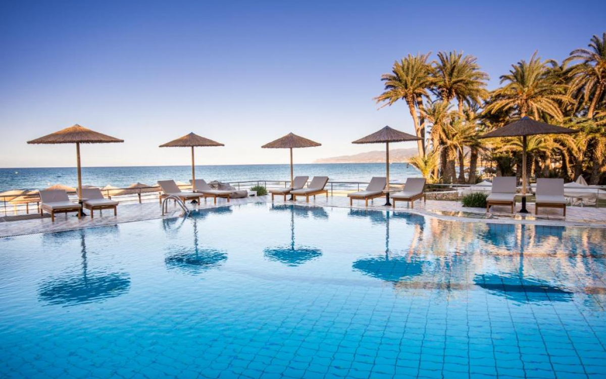 Hotelska ponudba: recepcija s sprejemnico, TV kotiček, internetni kotiček, brezplačen Wi-Fi v skupnih prostorih, restavracija, hotelski bar, bar ob bazenu s prigrizki, taverna, zunanji bazen, ležalniki in senčniki ob bazenu brezplačno, na plaži (doplačilo za set 5€/dan), kopalne brisače (varščina 5€), parkirišče (omenjeno število).